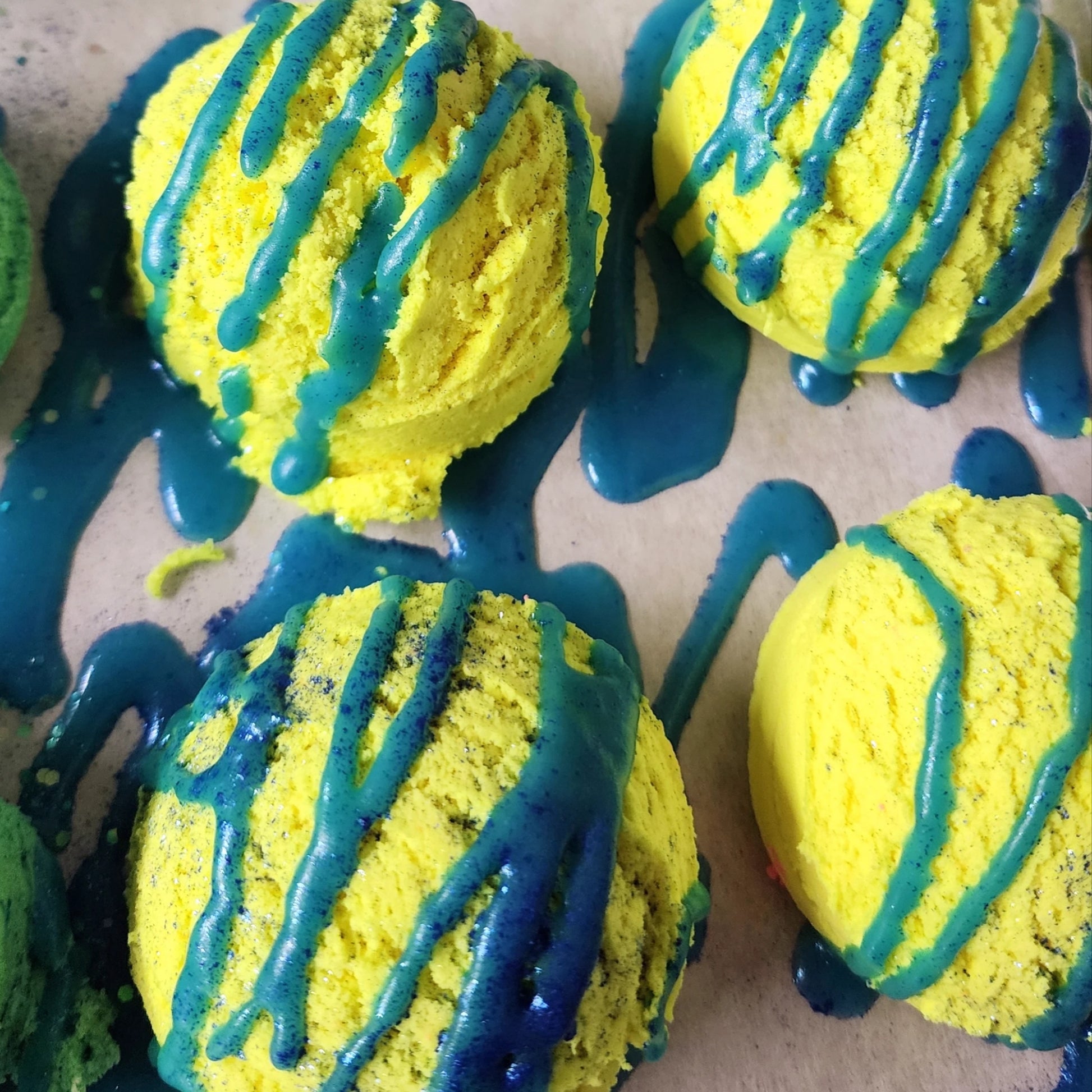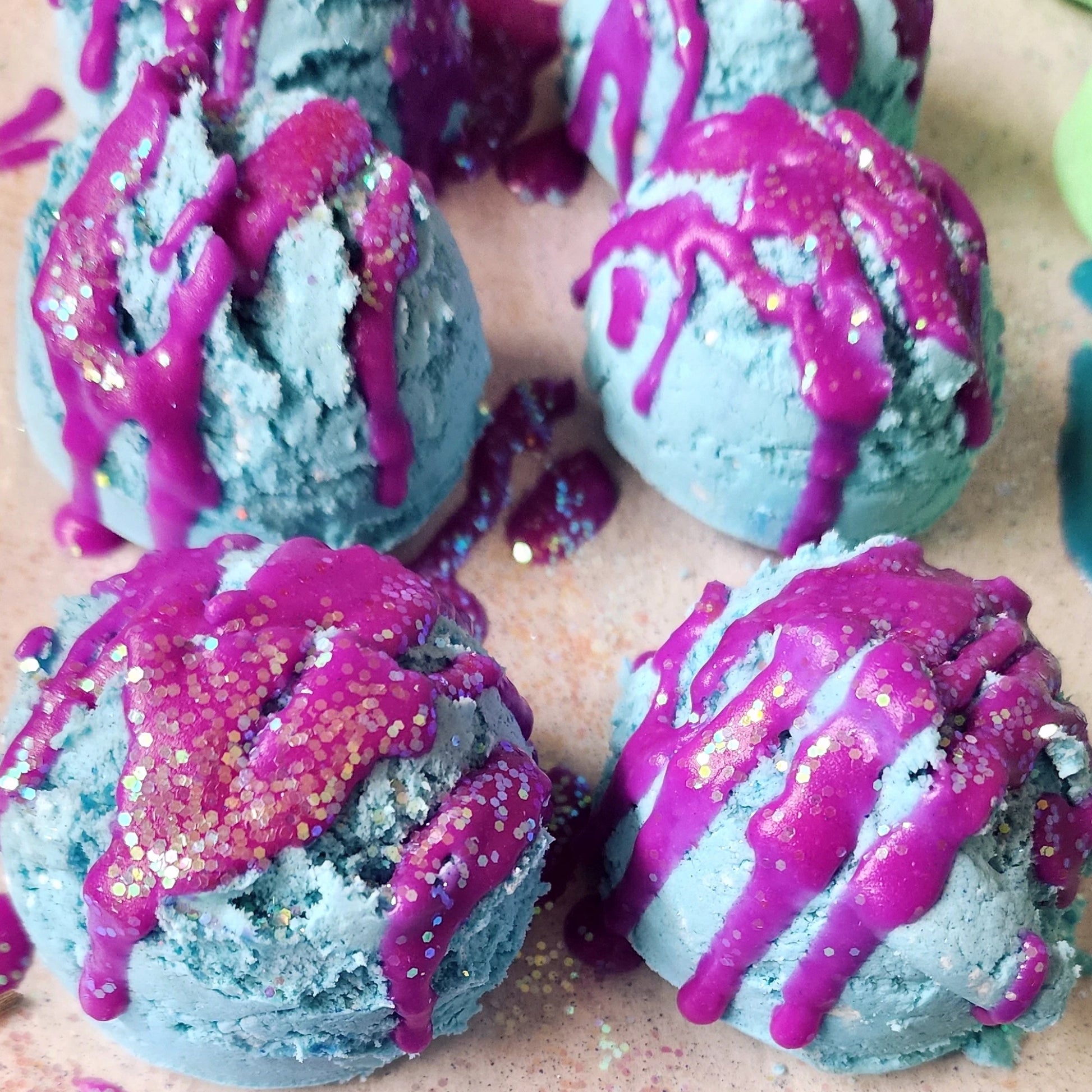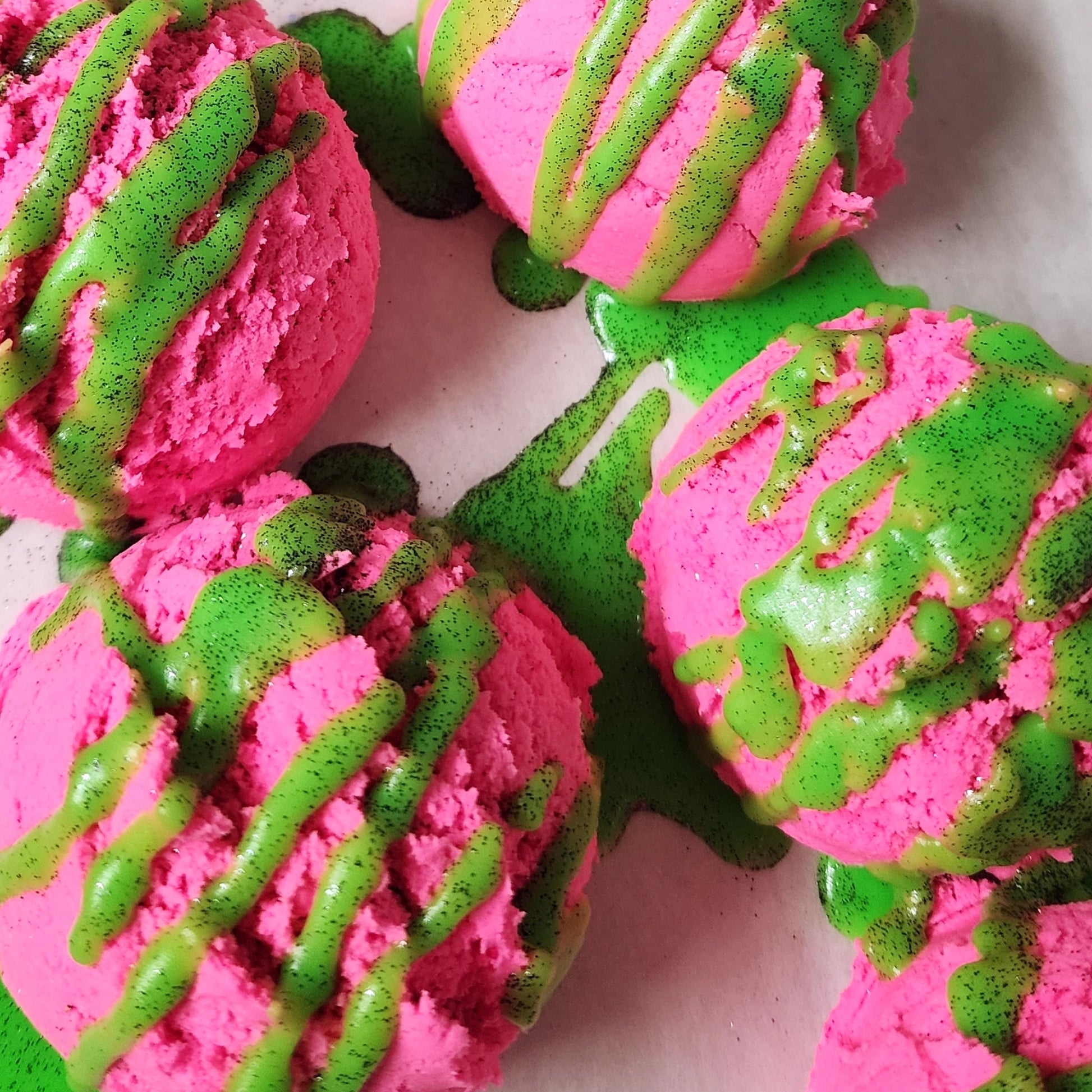 Contains: Sodium Bicarbonate, Citric Acid, Potassium Bitartrate, Kaolin Clay, Fragrance Oil, SLSA and/or SCI, Apricot Kernel Oil, Polysorbate 80, Yellow 5, Yellow 6, Red 40, Red 28, Blue 1, Mica and/or skin safe pigments. (color usage varies by batch) May contain other ingredients for embellishments.