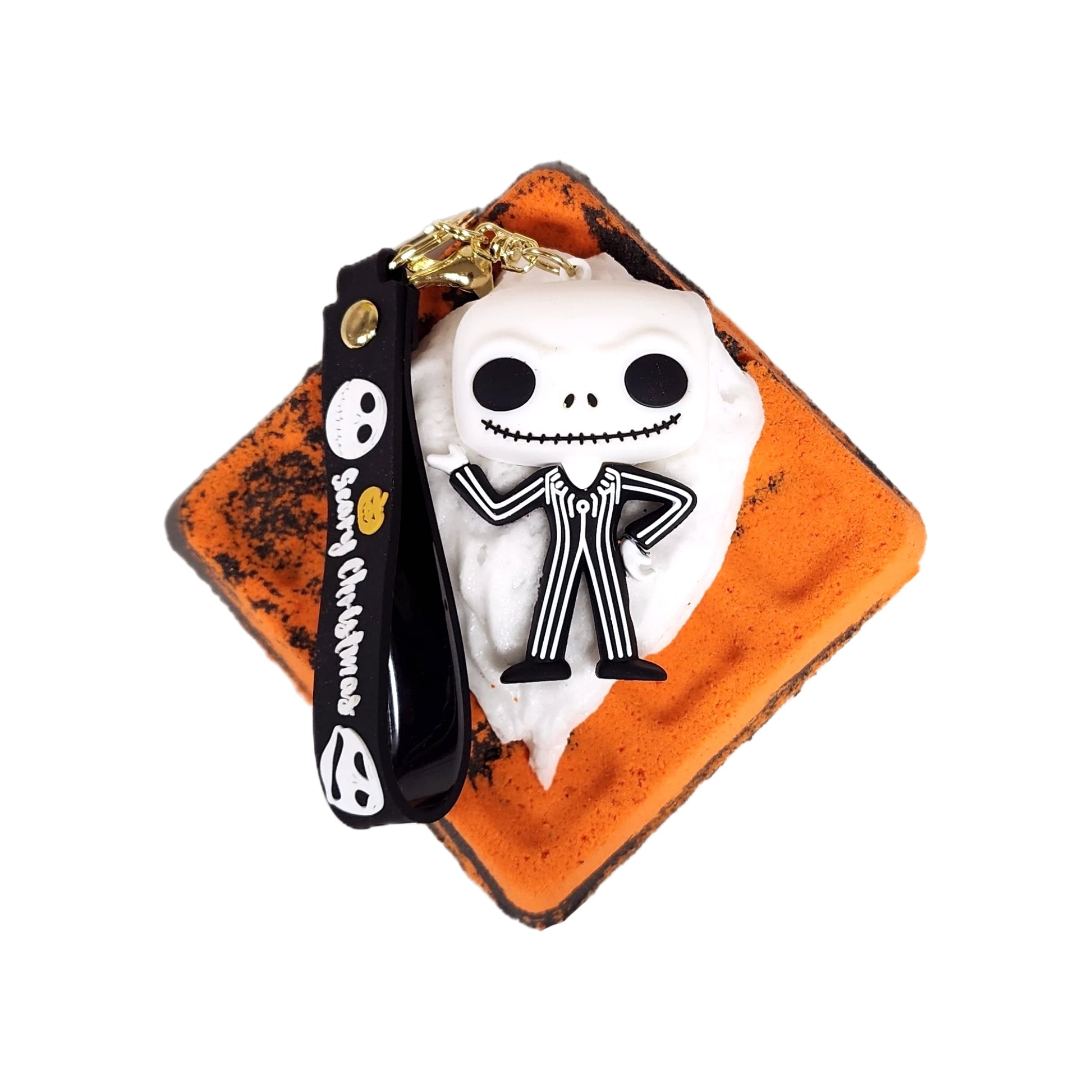Bring a little Pumpkin King magic to your bath! Our Jack Keychain Bath Bomb fizzes, foams, and fills your tub with hauntingly gorgeous color and fragrance โ plus, you get a Jack-inspired keychain to keep long after the bubbles fade. Perfect for Nightmare Before Christmas fans, Halloween lovers, or anyone who likes their self-care with a spooky twist.